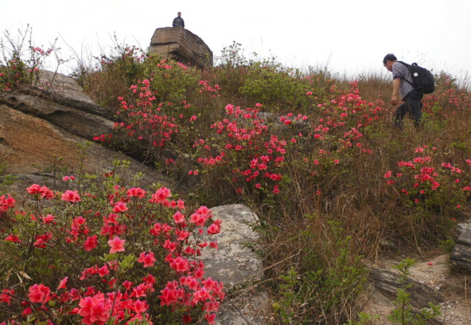 11:30 沿着山脊走,有古寨、古城墙、烽火台、杜鹃花、紫藤花、奇山异石、高山草甸。