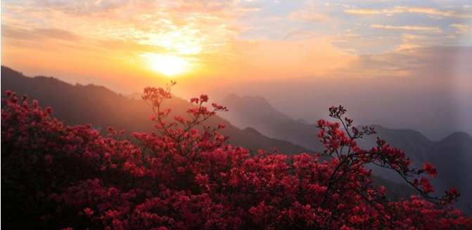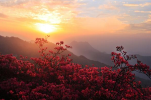 龟峰山因其地形山势酷似一只昂首问天的巨型神龟而得名龟峰山。龟背岭上生长着连片面积达十万多亩,生长周期上百万年的千年野生的古杜鹃。满山遍野的红杜鹃繁华似锦如霞,暗香浮动,摄人心魂,被誉为“华中杜鹃第一山”。
