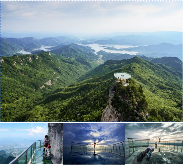 早餐后前往【麻城狮子峰】。观赏中原第一松、游走吊桥、登顶巍峨险峻的狮子峰,览尽大自然的鬼斧神工。更能体验于悬崖峭壁处凌空行走的玻璃栈道,360°无障碍的高空巨型玻璃观景平台——“天空之镜”,让您的小心脏砰砰直跳!
